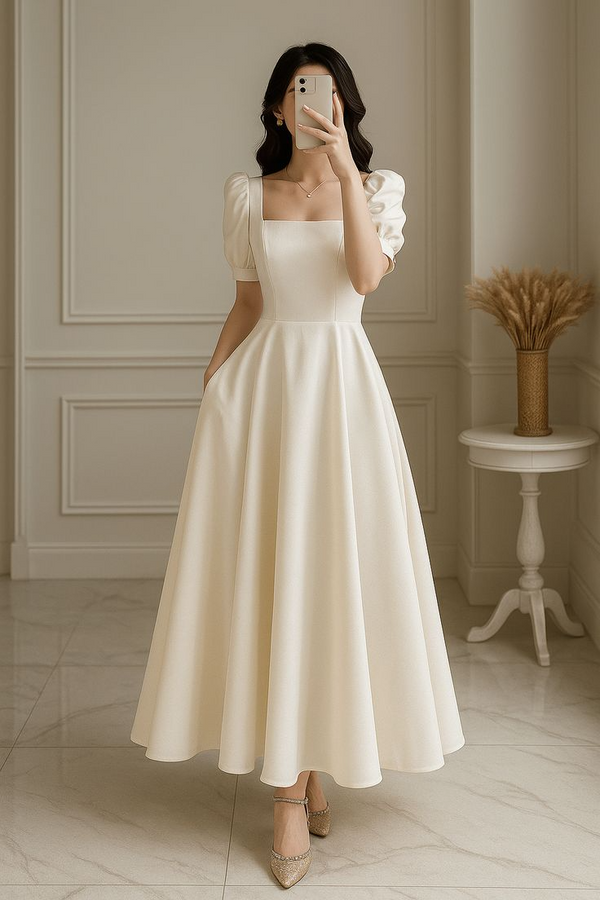 Button-Front Long Sleeve Dress